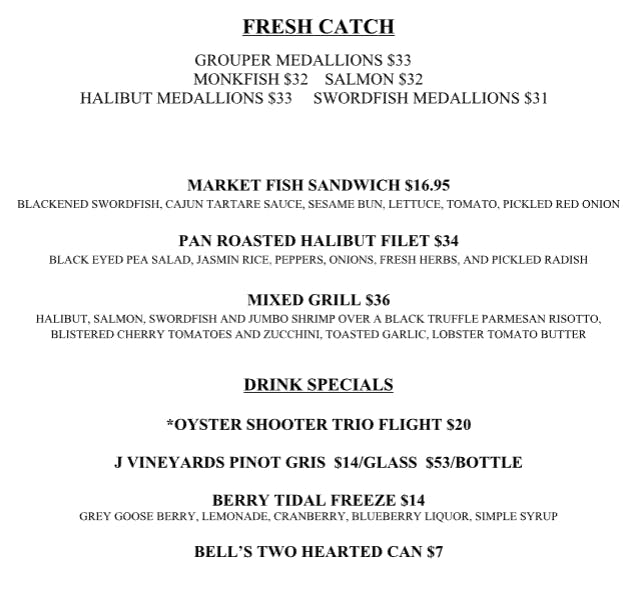 Fish and preparation change daily. See chef's special menu for today’s selection, fries
