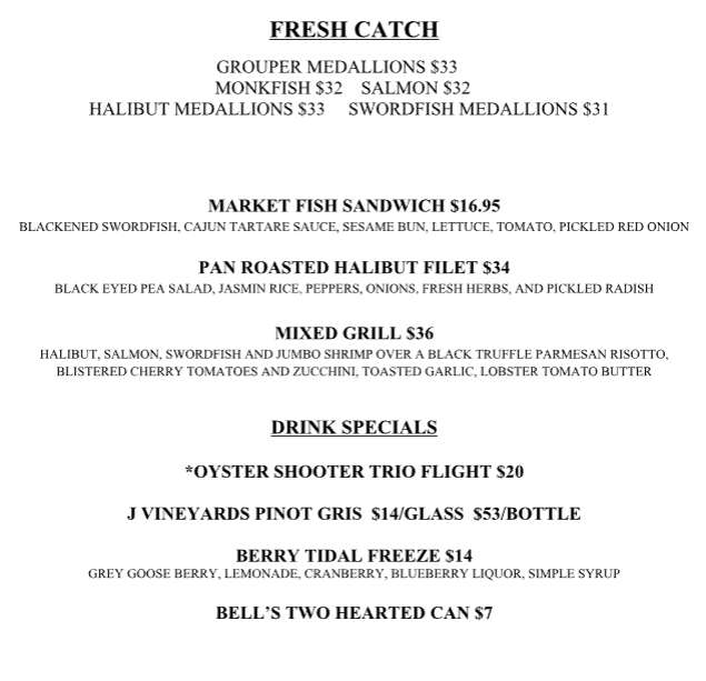 Fish and preparation change daily. See chef's special menu for today’s selection, fries